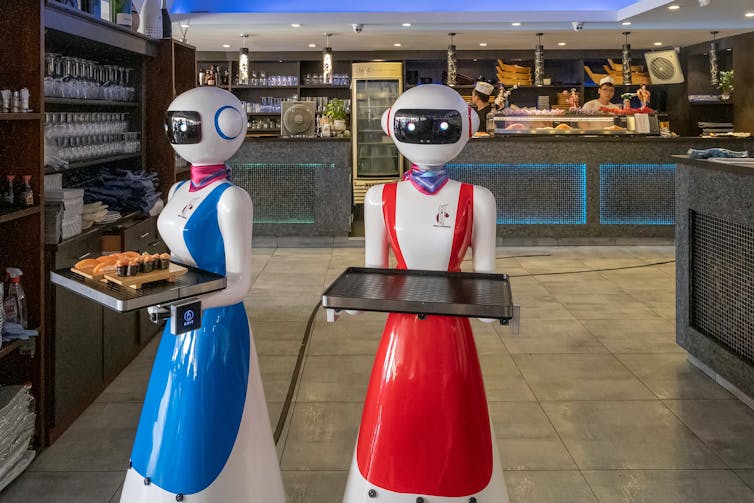 A fecha de hoy no hemos visto un robot que haga todas las tareas que hace un camarero. En cambio, sí que se pueden ver ya robots realizando la tarea de llevar los platos de la cocina a las mesas. Un restaurante o una cafetería que cuente con este tipo de robots sencillos no prescindirá de los camareros pero, probablemente, necesitará menos.